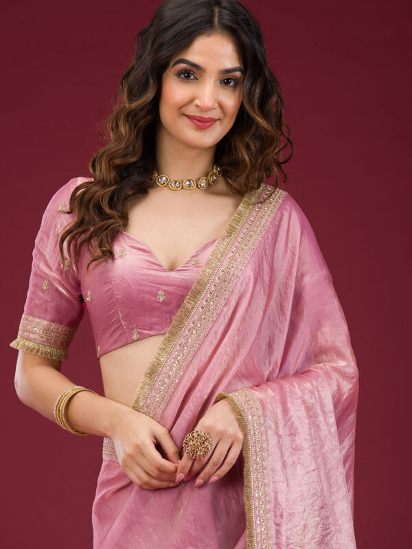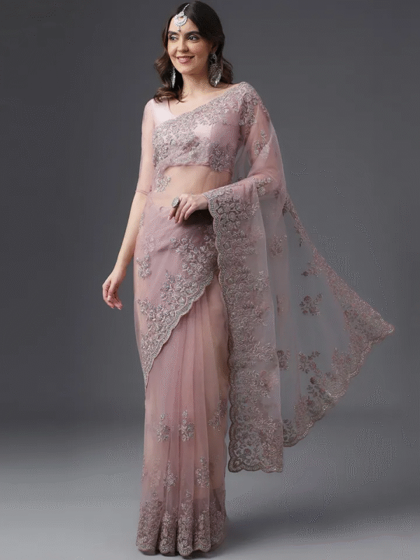Women Floral Embroidered Zari Straight Crushed Organza Kurta Set