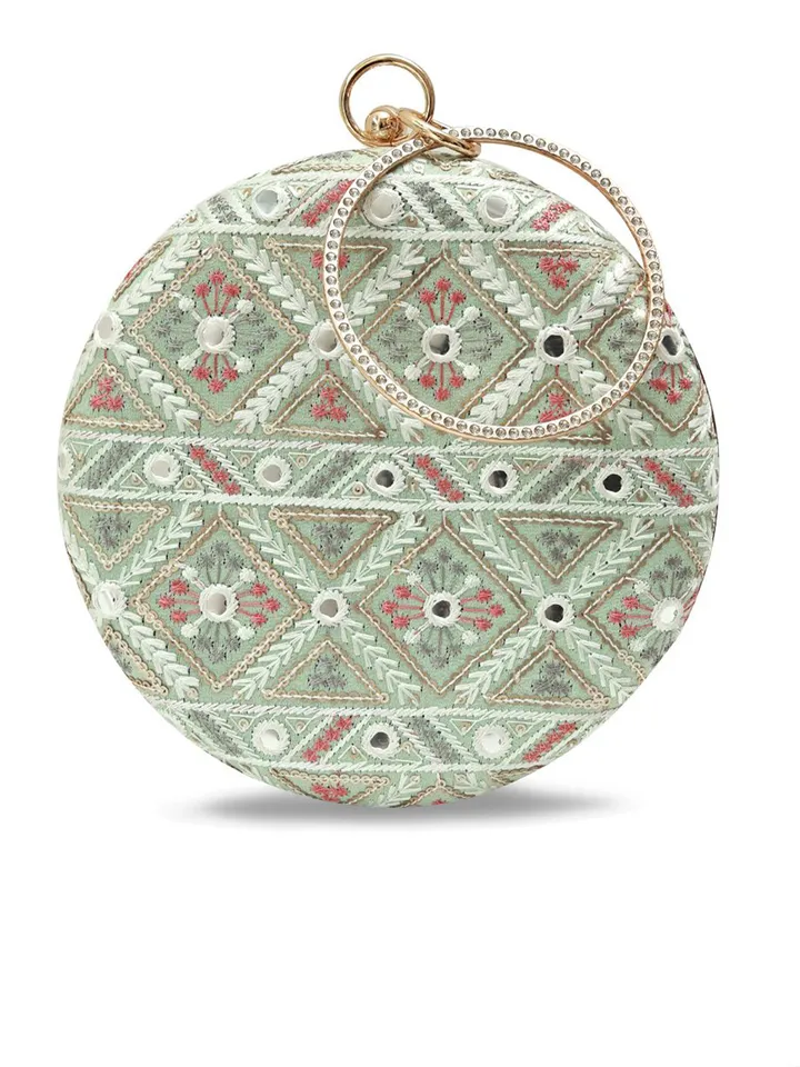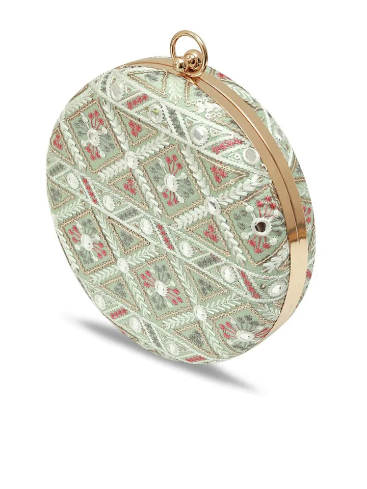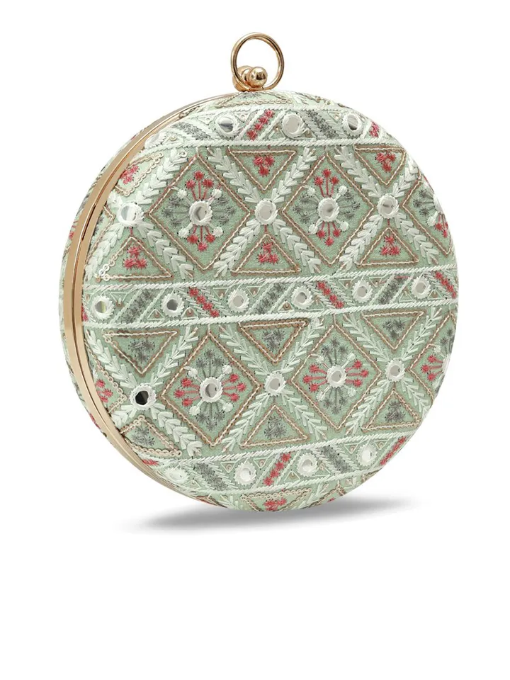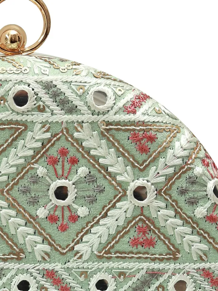Green, pink and white embroidered box clutches Has shoulder strap 1 main compartment with click closure