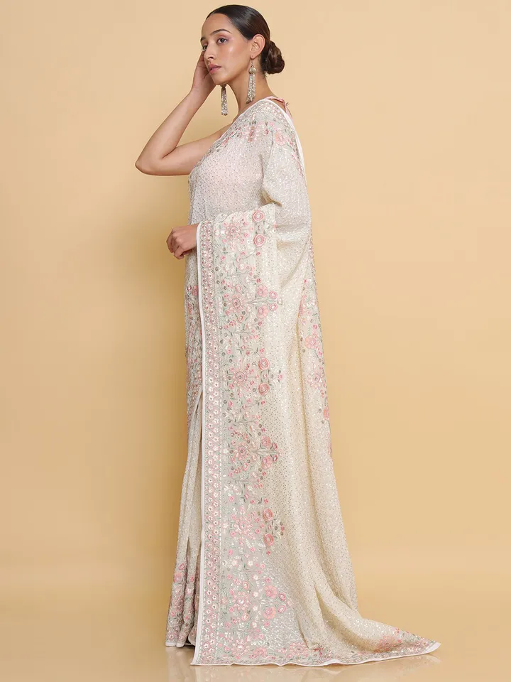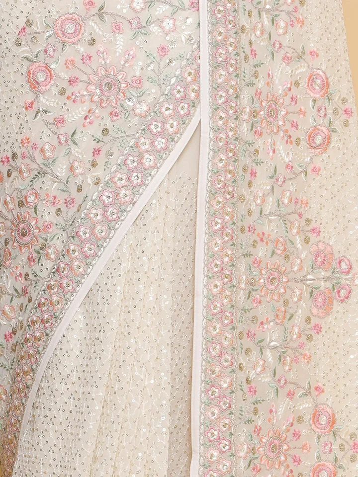 - Floral embroidered saree with embroidered border