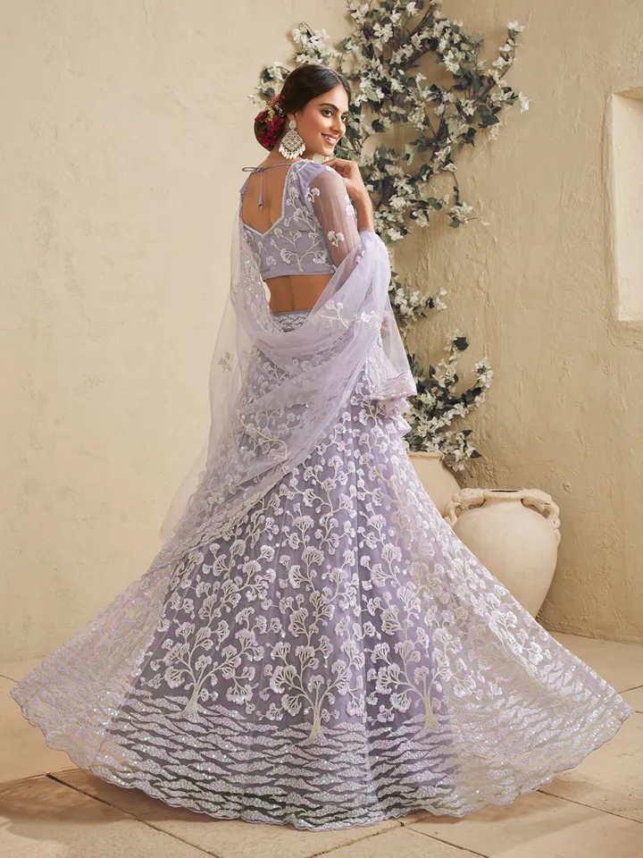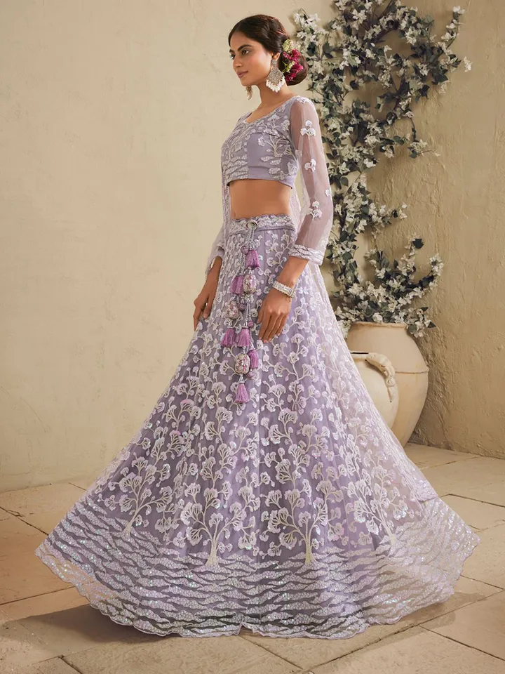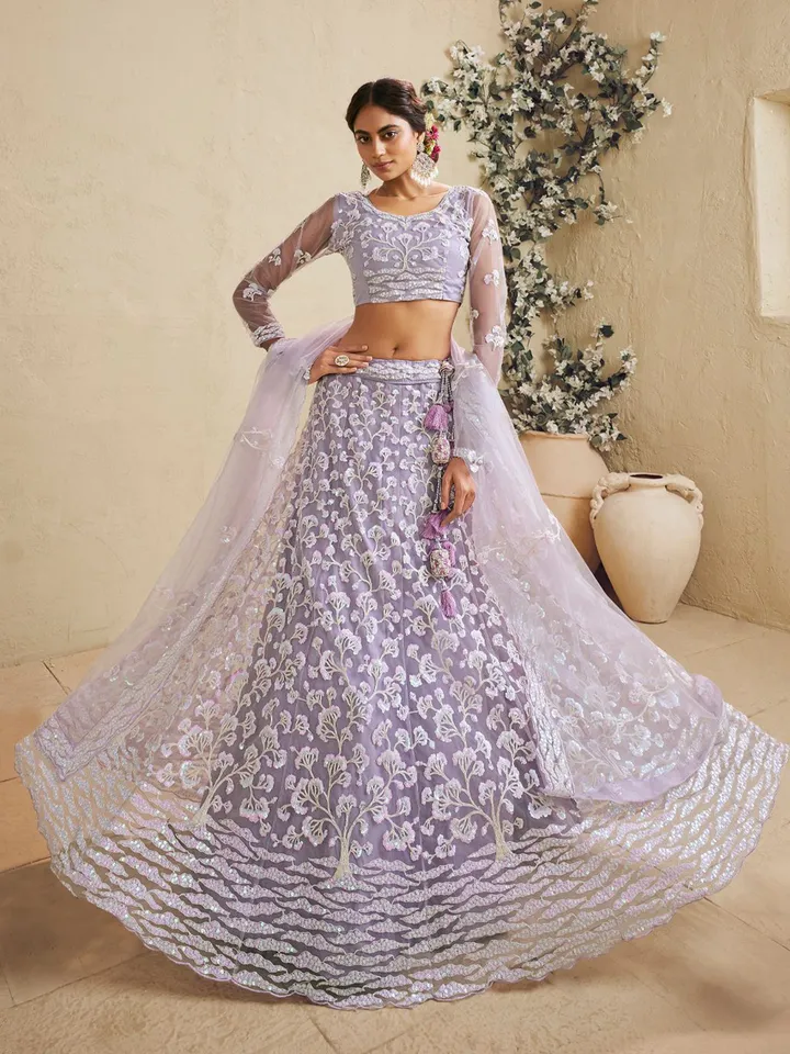 Embroidered Sequinned Semi-Stitched Lehenga & Blouse with Dupatta