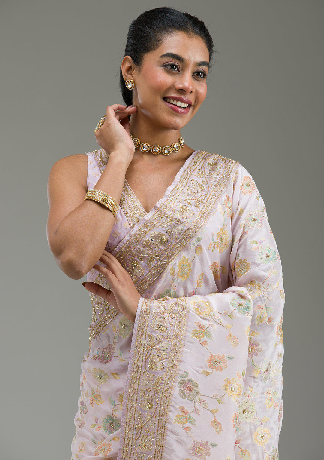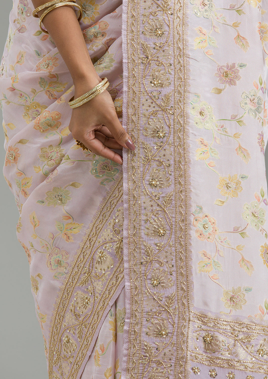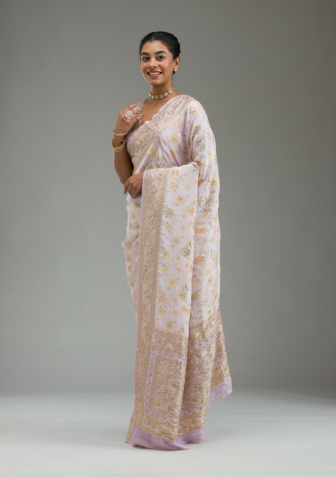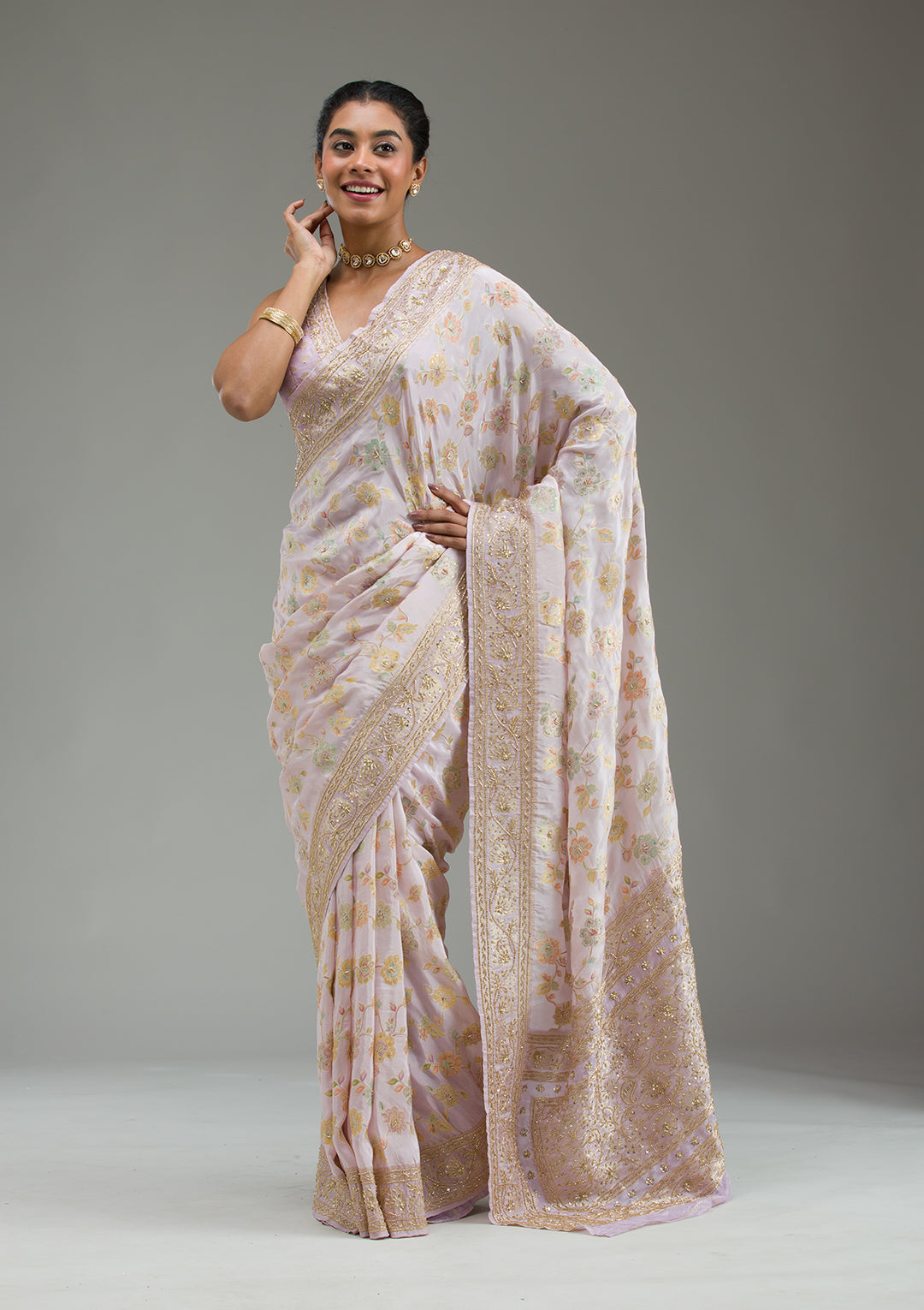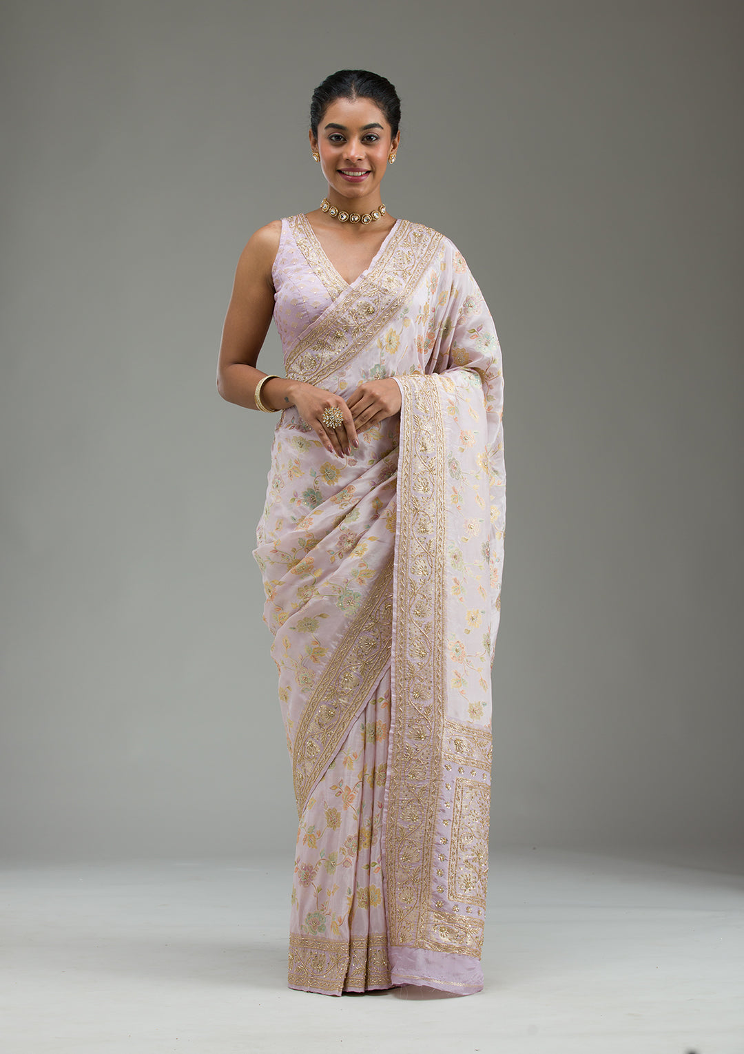 Lavender Saree in Taffeta Silk fabric The Saree is elevated with Plain embroidery It comes with an Unstitched blous.