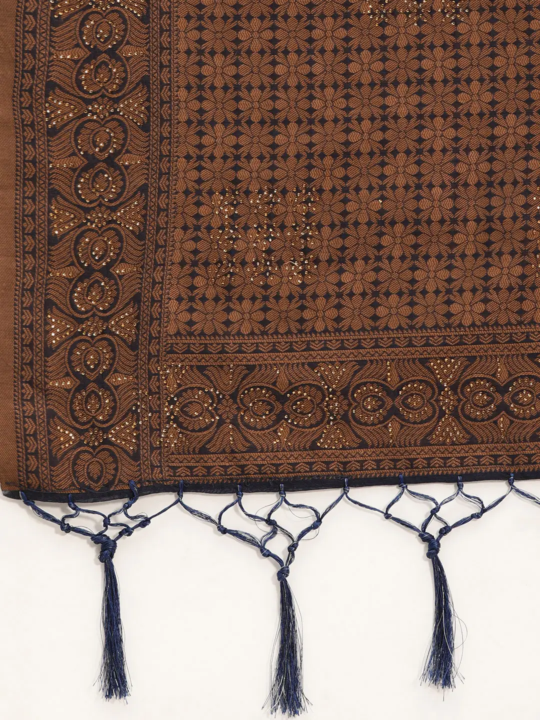 Navy Blue & Bronze-Toned Ethnic Motifs Saree with Beads & Stones