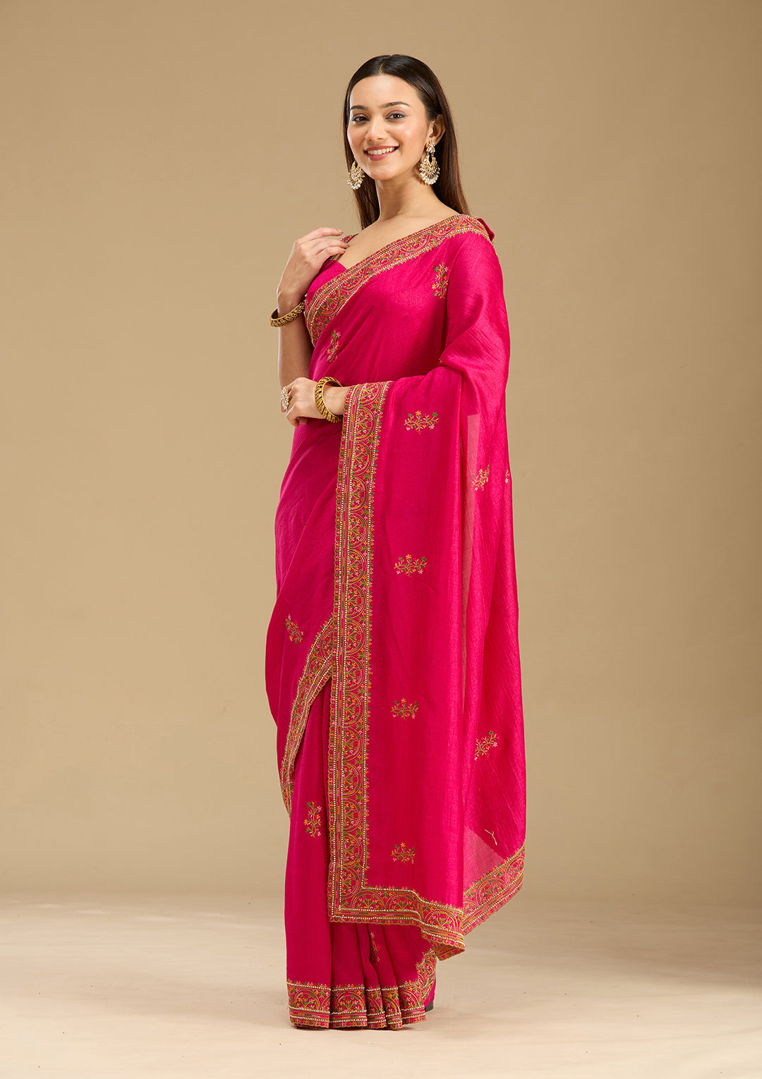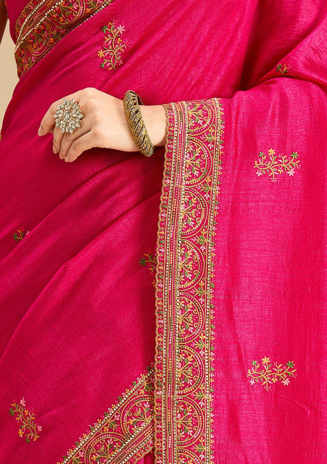 Rani Pink Kashmiri Soft Raw Silk Saree