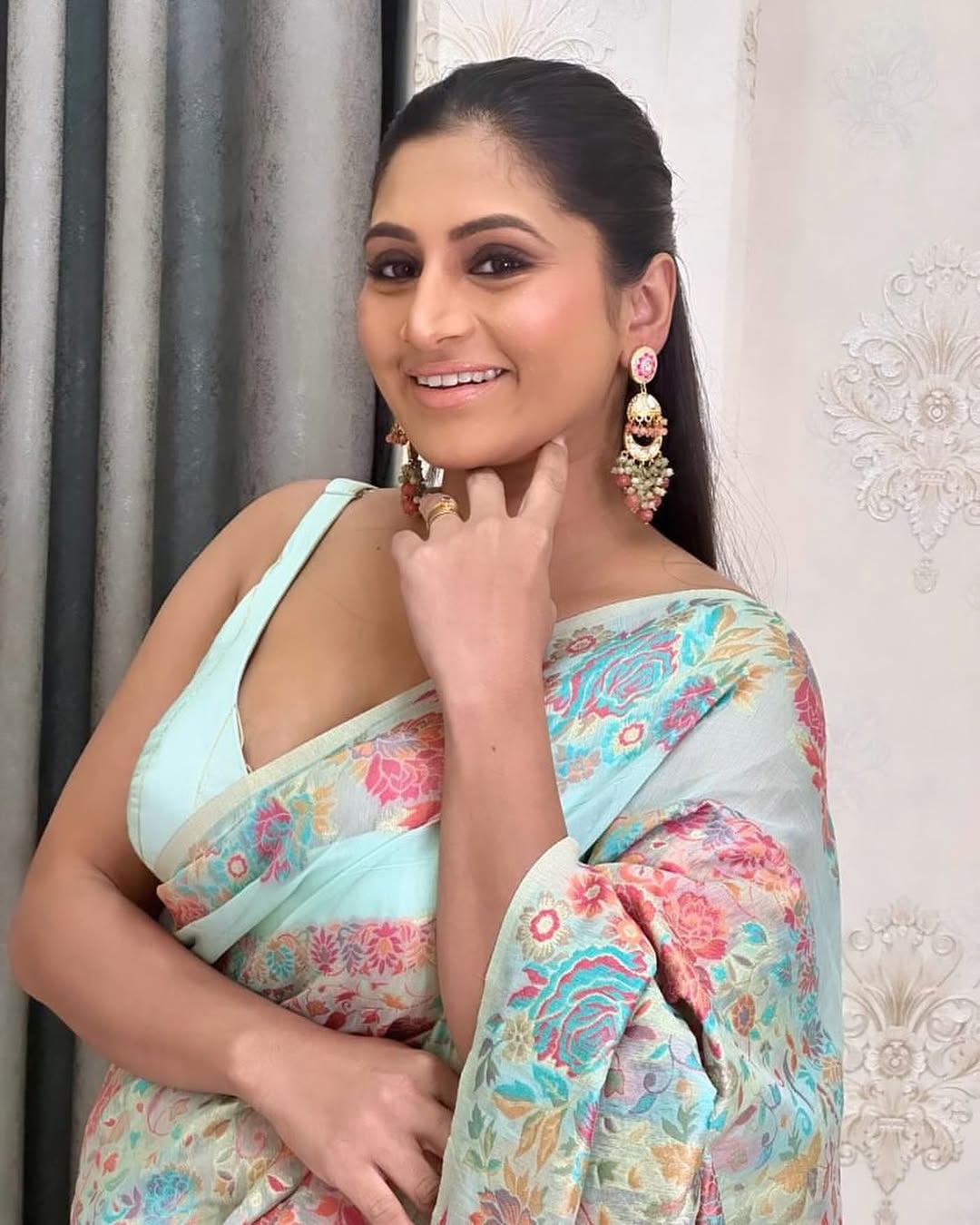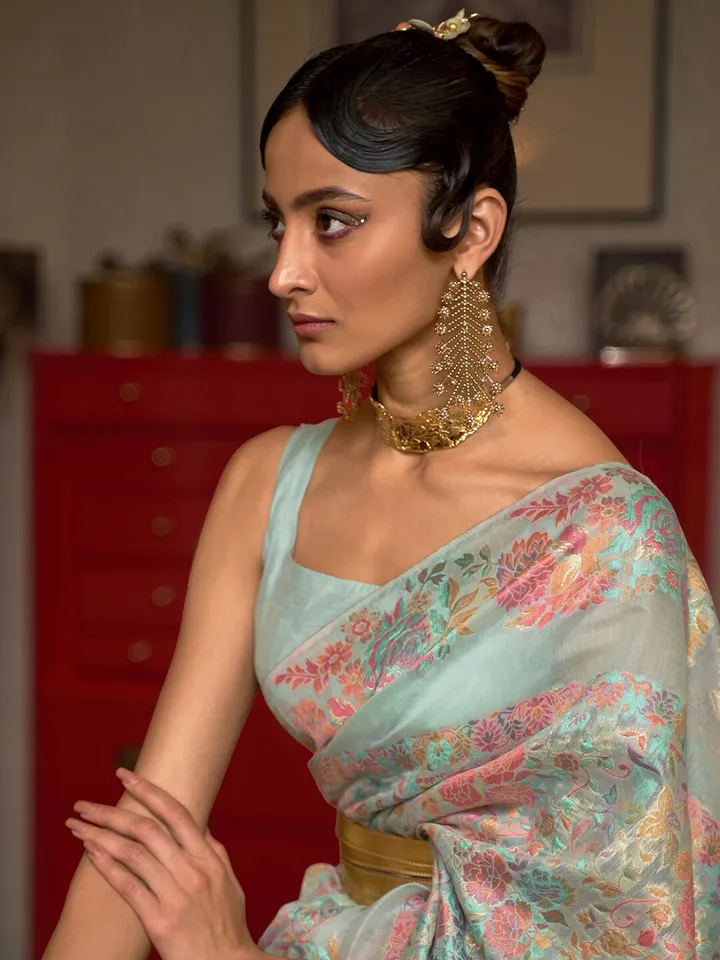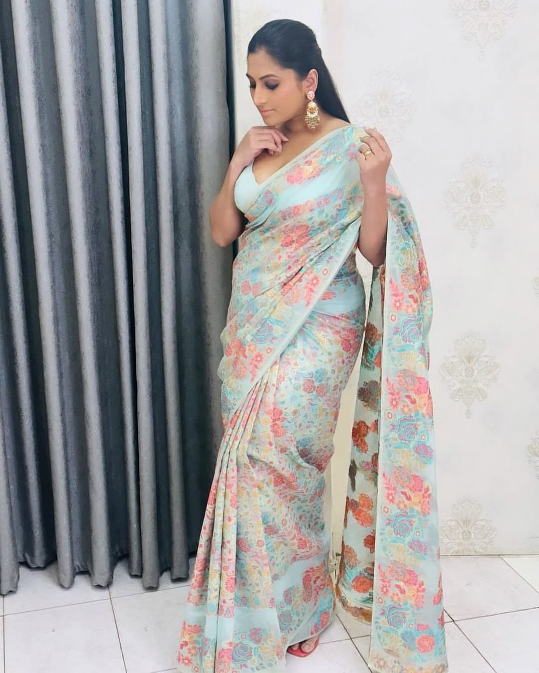 The blouse worn by the model might be for modelling purpose only. Check the image of the blouse piece to understand how the actual blouse piece looks like.